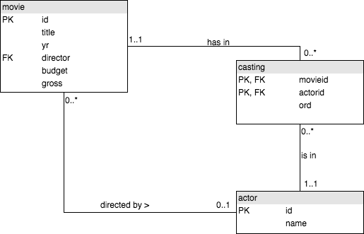FROM actor d JOIN casting a ON (a.actorid=d.id)