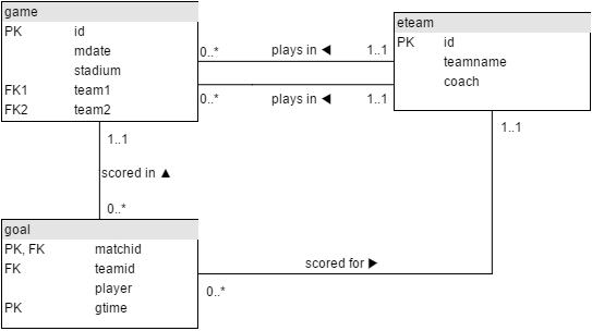 The table eteam gives details of every national team including the coach. You can JOIN goal to eteam using the phrase goal JOIN eteam on teamid=id